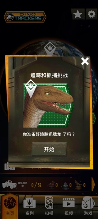 1、在本站成功安装《侏罗纪世界真相》后,进入游戏主页,会看到地球界面以及可点击的恐龙图标;