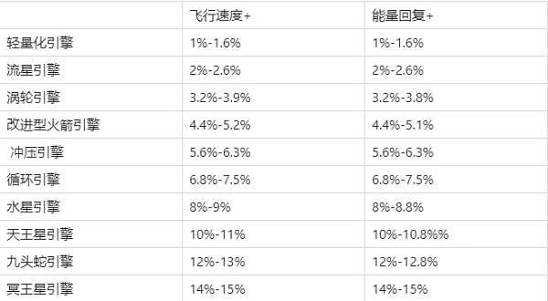 各星阶引擎级别属性提升范围如下表所示: