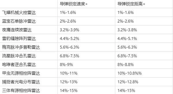 各星阶雷达级别属性提升范围如下表所示: