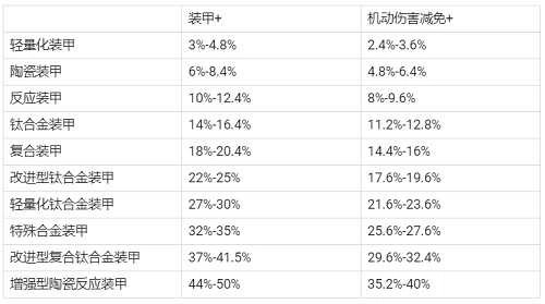 各星阶装甲级别属性提升范围如下表所示: