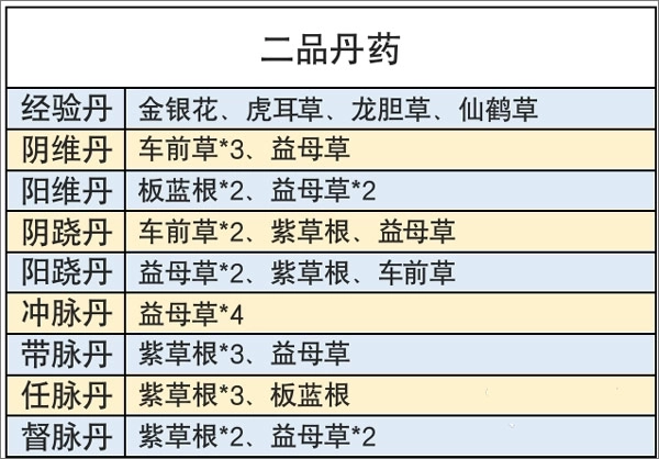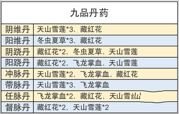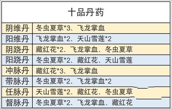 炼药所需的材料,能通过野外采集、向NPC商人购买或者去后山探宝这几种方式获取。每次进行野外采集都会消耗6点体力,要是从商城购买的话,则需要花费大量元宝,所以每一份草药都十分珍贵,千万不能浪费。下面就为大家提供全品阶的丹药配方作为参考,帮助各位少侠能够稳步提升自己的修为。