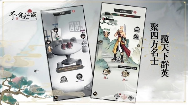 不休江湖免费版是一款自由度极高的武侠题材角色扮演游戏。在游戏里,玩家能够自主挑选喜爱的门派,拜师学习并修炼多种心法与武功,依据角色的属性特点搭配出独一无二的功法体系;还能按照任务提示完成系统给出的多样挑战,沉浸式地感受充满江湖韵味的冒险之旅。此外,玩家也可以收集各类资源,亲手制作实用的道具,以此直接增强自身的战斗能力,一步步成长为武林中的顶尖高手。