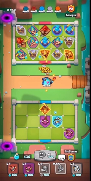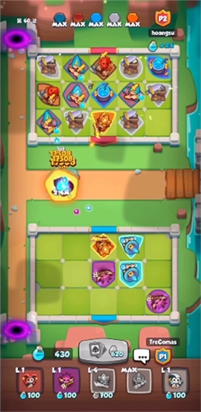 皇家冲冲冲最新版(RushRoyale)是一款融合策略塔防与卡牌收集元素的趣味游戏,采用卡通画风描绘热血战场。你将化身为三国主公,经营自己的专属主城,通过召唤和合成单位来构建防线,每一步操作都充满不确定性,随机掷出的骰子或许会改变战局走向;升级英雄不仅能增强属性,还能解锁炫酷的新技能,连外观也会随着成长而发生变化。快来组建你的梦幻阵容,开启这场满是惊喜的攻防之旅吧!
