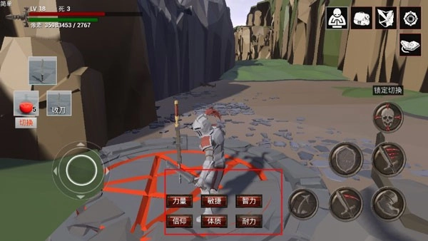 1、采用虚拟摇杆进行操控,攻击、格挡、跳跃、加速等动作均可一键释放。