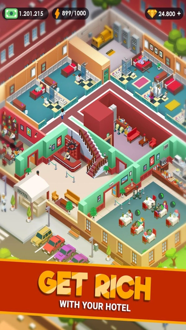 维持酒店的日常运营,同时你还要策划将酒店的面积扩大,装修得更豪华!