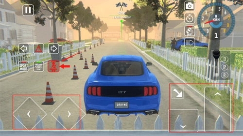 2、驾驶前需先系好安全带,随后通过左下角按键控制汽车方向,右侧按键则用于操控汽车的停止与前进等操作。