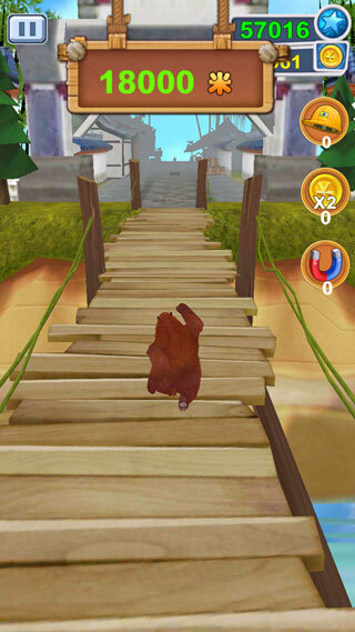 3、正如前文所介绍的,你的目标是助力熊大尽量跑得更远,同时尽可能多地收集沿途金币。游戏视角为面向角色前方推进。