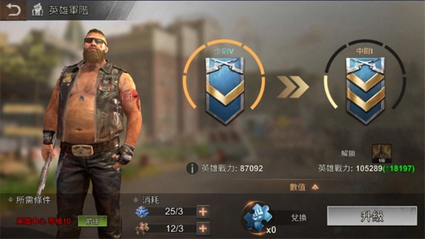 「英雄升阶」机制:当消耗特定数量的英雄碎片与英雄徽章后,即可提升英雄的军阶。英雄完成升阶后,能够获得显著的战力加成、基础属性数值加成以及带兵数值加成。除此之外,玩家还能借助提升英雄军阶的方式,提高该英雄技能等级的上限。而英雄的军阶上限,会受到「英雄中心」当前等级的制约。