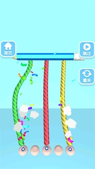 3、游戏里有超多丰富多样的玩法,当几个线盘绕在一起时,你需要在最短时间内解开它们。