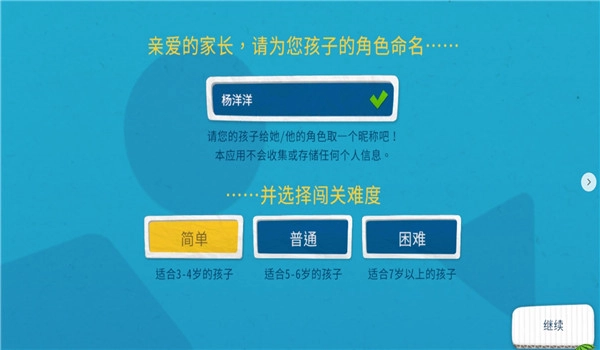 给自己的孩子取一个名字,选择闯关难度。