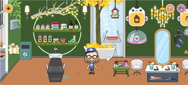 1、启动游戏后进入游戏界面,能看到各式各样的小店,像理发店、奶茶店、美容店之类的都有。