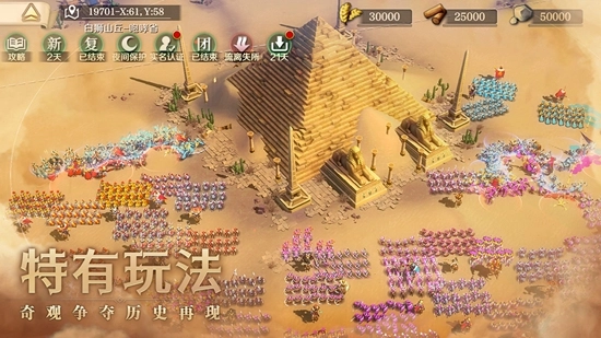 《文明与征服》巧妙融合战略与“吃鸡”玩法,创新推出别具一格的千人战略“吃鸡”模式。游戏内包含启动战局、移动城池规避危险区域、夺取城池并进行资源开发等多样玩法,让这场“文明吃鸡”的体验既精彩又充满乐趣。