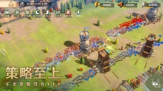 独创无损征兵系统,0损耗自由战斗;6千人同屏作战,超燃攻城策略布防;绿色公平,实力说话,扩张版图全靠谋略!为百万领主带来更真实、更刺激的策略体验!