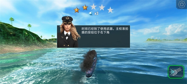 当战舰性能达到标准后,可通过点击屏幕右下角的武器按钮发起攻击。