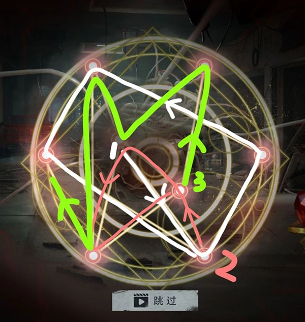 在第五章里,当卡洛琳挥动着手杖发起挑战(×)时,玩家得迅速一笔勾勒出魔法阵的图案,一共有三幅图,这三幅图共用一个时间限制,而且绘制的路径不能重复,这对刚接触的玩家而言难度不小。