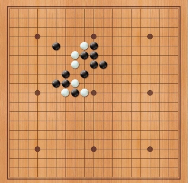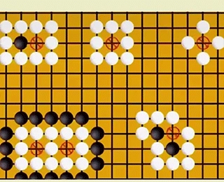 2️.黑白双方交叉落子,谁的宣战的交叉点多谁赢