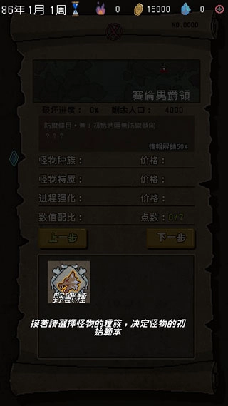 接下来要做的是协助怪物挑选它的出身种族,还有初始的攻击力等属性。