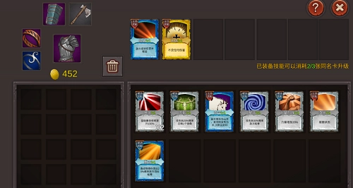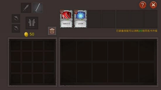 在游戏中,技能一旦装备后便无法直接替换,必须通过神庙删除已有的技能,才能换上新的技能。以下图为例,图中共有两个技能。