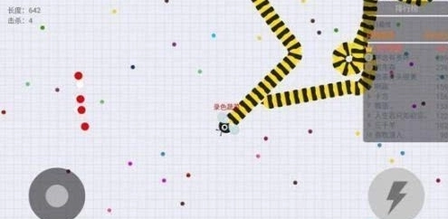 注意啦!贪吃蛇的头部一旦碰到其他贪吃蛇,就会导致自身死亡,同时还会生成许多小圆点。