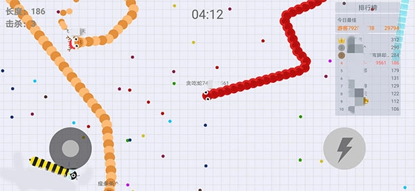 长按加速键,通过灵活的走位引诱其他蛇撞上你的蛇身,这样就能吃掉它们的尸体,让自己的蛇迅速变长。