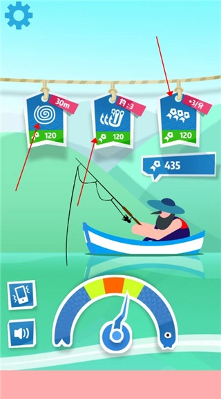下面指针不停摇晃,我们点击屏幕下杆的需要确保指针在最中间,这样收获比其他位置多