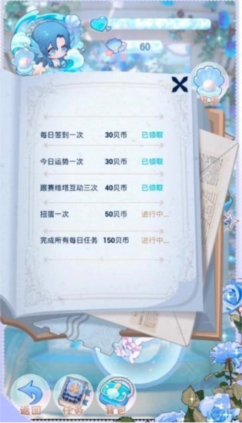 每日任务在房间里点开就能查看啦,完成每日任务可以获得200贝币哦。