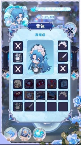 右上角设有扭蛋机,通过它可以获取家具和赛维塔的服装。获得的物品可在背包中打开并更换,更换后就会出现在小房间内(当前开放了两个房间和两台扭蛋机)。