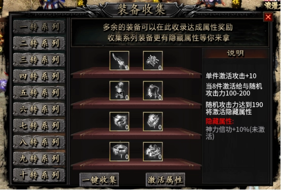 第二页前期先不要勾选土城的装备收集任务,等把1-2转的装备都回收完成后,再去勾选这个选项。