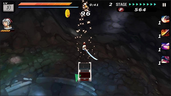 5、吸血技:朝敌人(非BOSS)方向快速滑动手指,就能触发必杀技,瞬间消灭目标并恢复自身生命值,但会同时大幅消耗耐力。