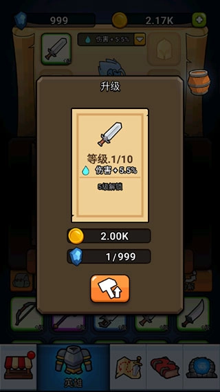 进入游戏后,点击“英雄”选项就能查看当前角色所穿戴的装备详情,不同品质的装备在威力方面存在差异。