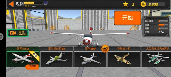 3、挑选心仪的飞机型号,准备起飞;