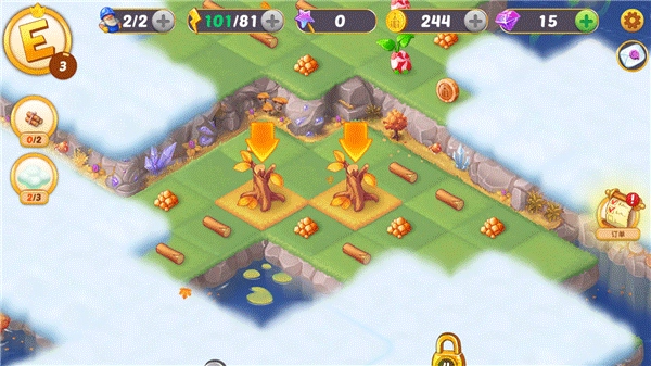 把木头合并,得到小木屋,再把小木屋合并,建成木头豪宅。