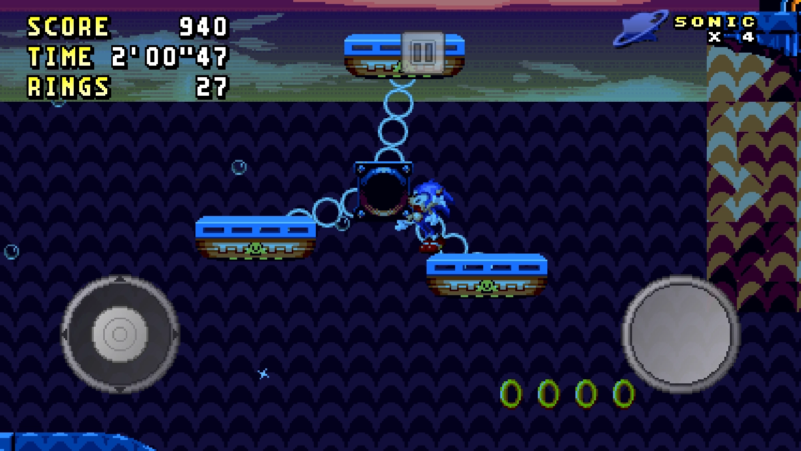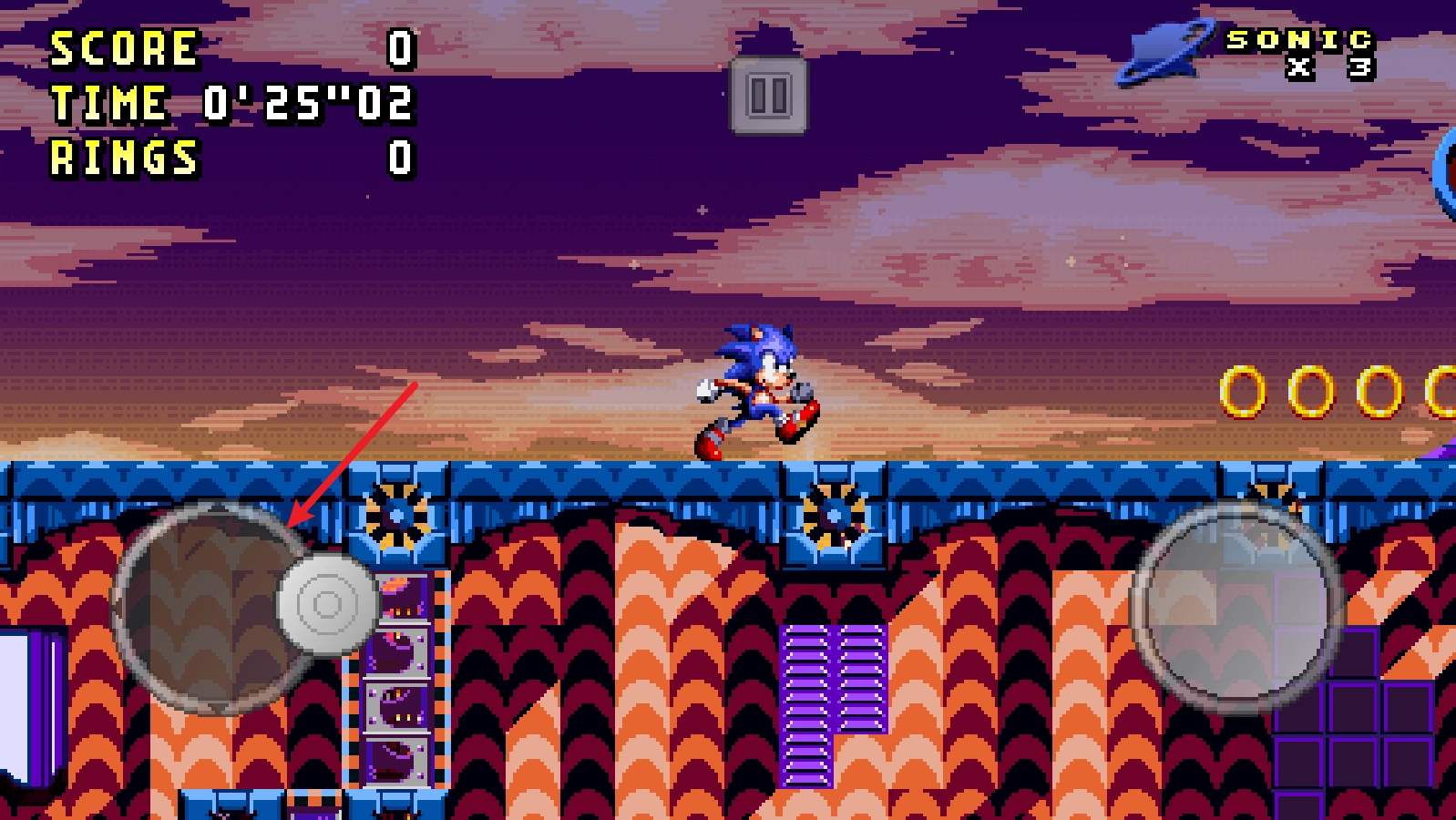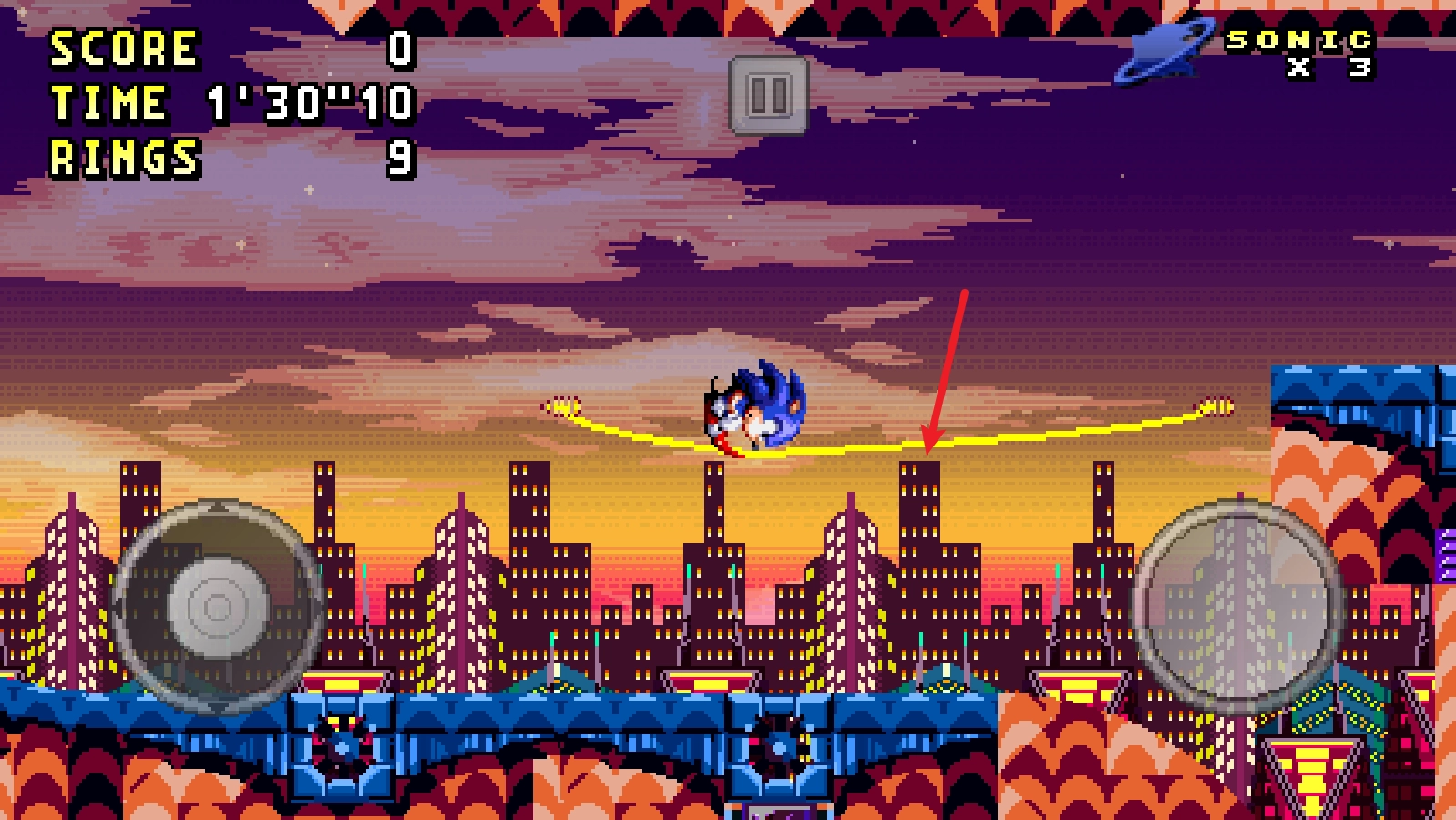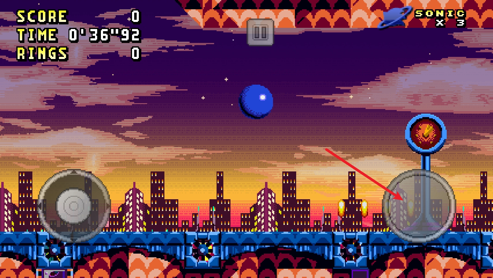 2、右侧的按钮能够操控索尼克完成跳跃动作,要是长按这个按钮,索尼克跳跃的高度还会更高一些。