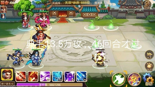 第三回合。第三回合第一次获得先手,因为是奇数,是控制回合,这回合还是要设法让谋士被控。因为有貂蝉大招,控制回合配合冰龙和封技成功率更高。小技巧,貂蝉有大放大,其他人对面三个和三个以上一定要优先放冰龙,如果少于三个,而我方剩余可放控制技能成员数量多余或等于对面,释放封技,单个控制。典韦奇数回合也要作为控制角色来用,但如果典韦前面的人控制得好,这轮他就去输出,这是最理想的节奏。典韦如果能多次奇偶回合输出,效率就会高,就是在预示着成功。