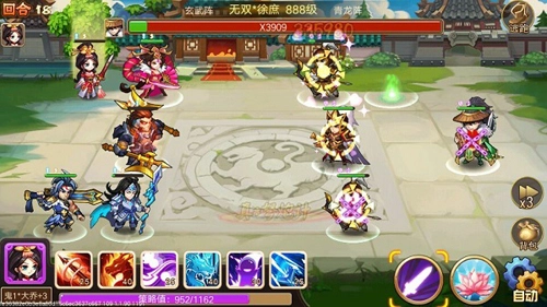 第一回合。因为对面群攻秒杀能力强,因此选择全员闪避。多次试验,等待多人闪避的情况发生,此时可放多个冰龙。最后注意重点关照谋士,可多个冰龙,不中他时用封技,切不可先用封技。谋士第一回合结束必须控住,因为谋士只会放秒杀技能,不会普攻,其他人都有可能放普攻。