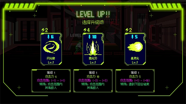 击败敌人能获取灵魂与经验,等级提升后,玩家可从随机给出的卡牌中挑选一张使用,若选择相同的卡牌,其威力便会得到增强。