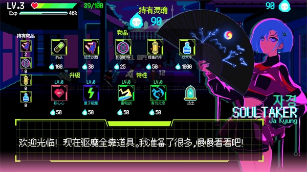 每成功击退两波敌人后,就能解锁进入商店的权限。在商店里,你可以用收集到的灵魂来兑换各类道具,或是为自身进行不同方面的升级强化。