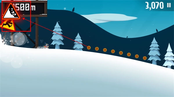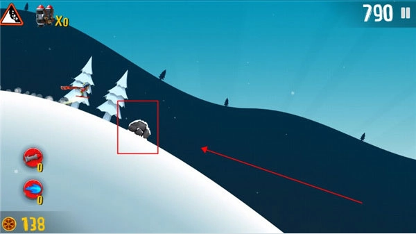 滑行过程中会碰到其他正在逃生的动物,像企鹅、雪怪、老鹰之类的,只要触碰到它们就能骑上去,这样滑行速度会大大提高。