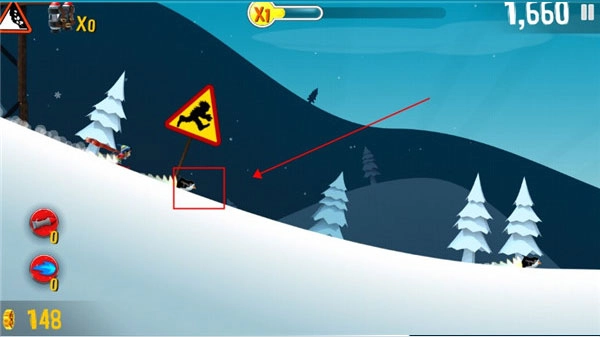 主角进入滑雪状态后,点击屏幕可实现跳跃动作。