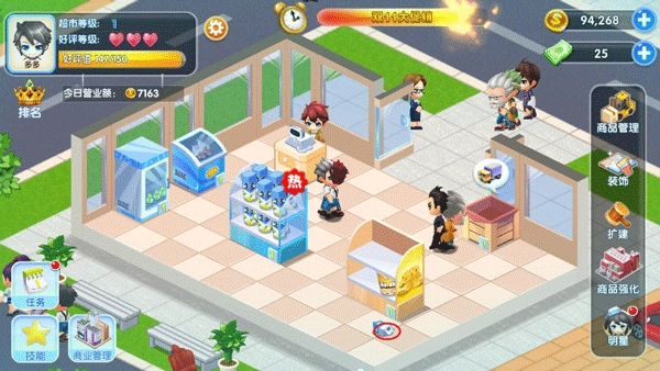 加强员工培训 员工是超市运营中非常重要的一环。你需要保证员工的素质和服务质量,提高员工的工作效率和服务热情。在游戏中,你可以通过给员工进行培训来提高他们的服务水平和销售技巧,让他们更好地为顾客服务。