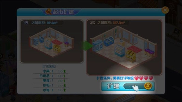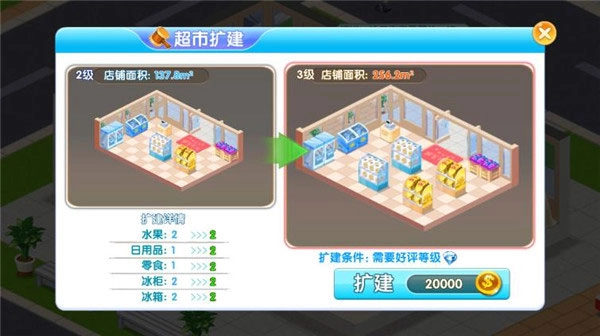 随着玩家们的等级提升,原来的小超市显然不够用,所以我们需要升级超市来扩充我们的商业帝国,所以小编现在就来告诉大家怎么升级超市。