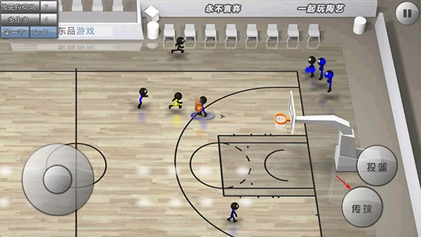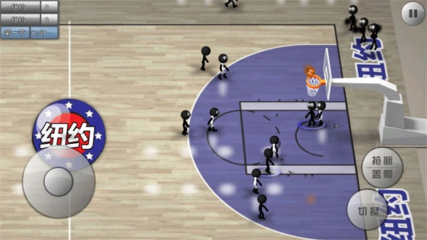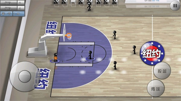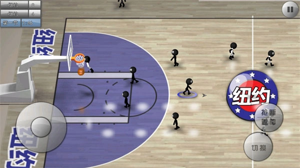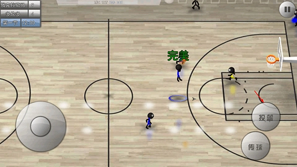 用虚拟摇杆就能灵活操控火柴人的跑位,仅需两个按键,就能完成传球、投篮、换防、抢断、抢篮板等丰富多样的操作,让你轻松体验比赛的乐趣。