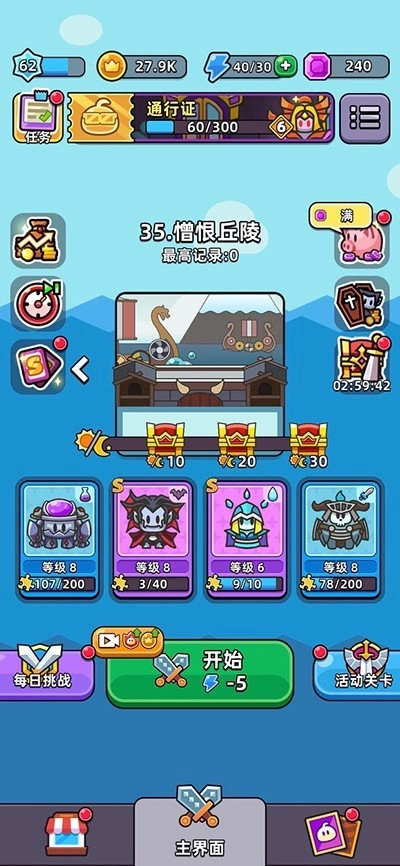 玩家需要合理的搭配不同的英雄,更加快速的闯过更多的关卡。