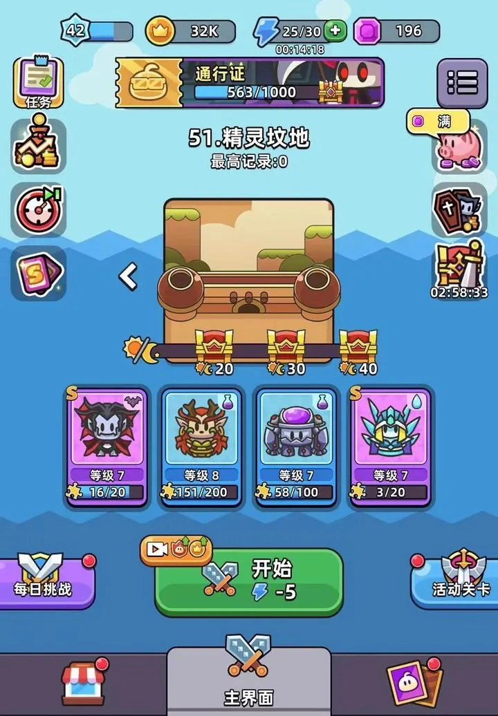 利用好每日合成+1卡日子,可以多合几个高级和满级英雄,20关以后感觉明显5合宝箱出步数概率变低,可以选择四合三合