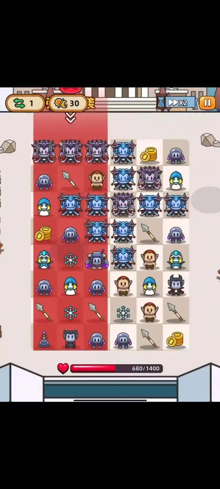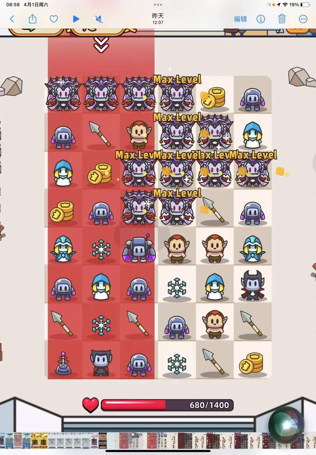 前期就是消消乐,就近五合或者三合非主力英雄,腾出格子,再刷出五合多升中间一级后再合成主力,可以先合上边格子,容易多爆步数,且留出下边空间方便操作。