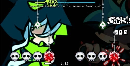 这是FNF玩家自制的同人模组,玩家能在游戏里开启音游节奏挑战。