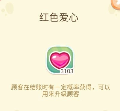 结账时才有一定概率获得。所以想要获得多的爱心,一定要让【甜品柜】上的甜品保持有货。否则没有货物,【顾客】是不会进店的。