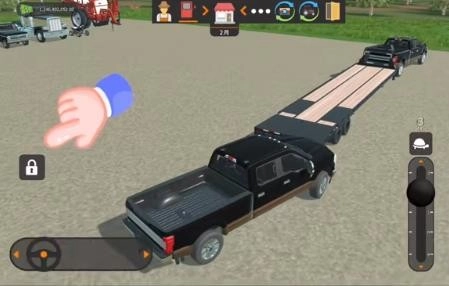 拖车的操作步骤如下:先把需要拖运的车辆开到拖车板后方,此时车辆左侧会出现一个锁形图标,点击该图标后,待拖车辆就会自动移动到拖车板上,之后只需驾驶与拖车板连接的车辆,就能牵引着被拖车辆一同移动了。