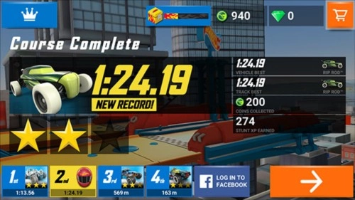 整个过程其实也并不算难,只要保证不翻车,顺顺利利的到达终点即可,关卡的结算界面显示的就是玩家的总用时和获胜星数。