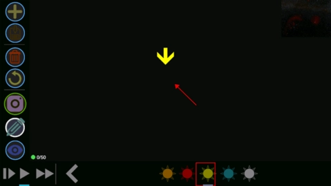 接下来要操作的是眼睛按钮,点击它就能进入选择模式。处于这个模式时,屏幕底部会显示出你之前创建的世界列表。在选择模式里,用手指拖拽屏幕会改变你的视角,而不是用来新建世界。通过这种操作方式,可以观察它们的绝对运动情况,而非相对运动。